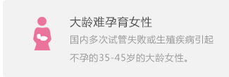 大齡難孕女性、國(guó)內(nèi)多次試管失敗、有個(gè)性化生育需求者、身體疾病無(wú)法自行生育者