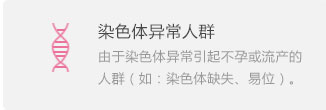 由于染色體異常引起不孕或流產(chǎn)的人群(如:染色體缺失、易位)。